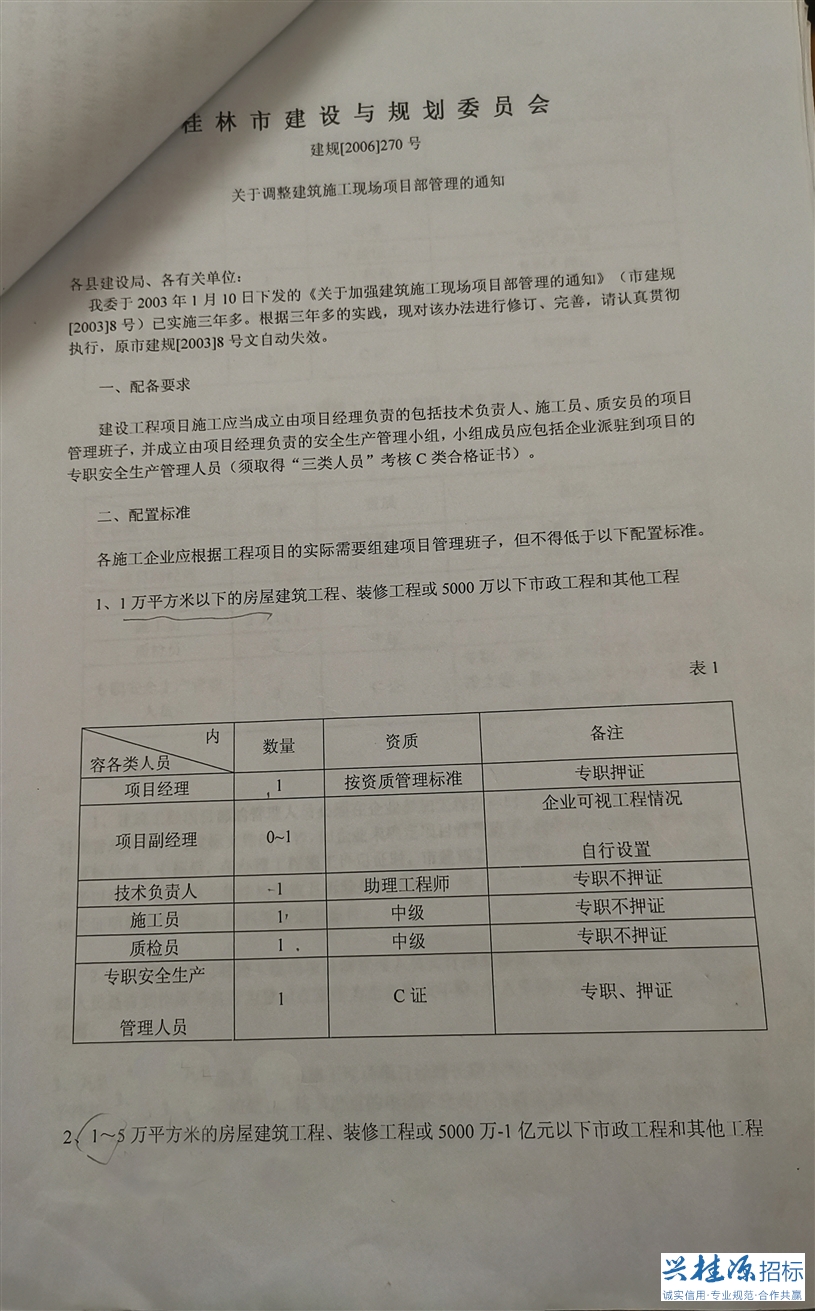 3、桂林建设与规划委员会建规【2006】270号《关于调整建筑施工现场项目部管理的通知》详见新利xinli(中国)附件1。